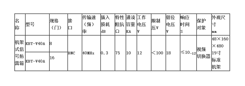 KBT集中式視頻防雷箱采用19英寸標準機架式結構,適用于多路視頻線路的集中保護,每路完全獨立,互不影響和干擾。主要用于視頻監控系統等防雷擊及電涌保護,分為8口、16口結構。