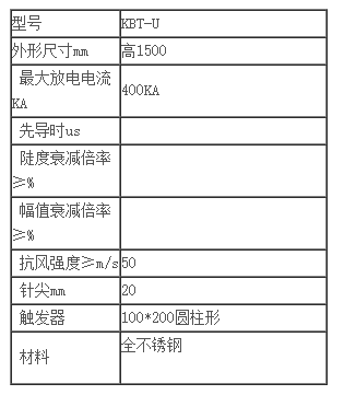 3、KBT-U限流避雷針具有對雷電提前先導作用,降低了雷電閃擊的能量;